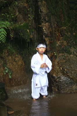 | '08滝に打たれる自然体験のようす