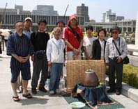 | 広島平和祈念公園慰霊碑東側において、滝の観音の水と、全国から届いた名水を合わせ水にして水琴窟に注ぐ原爆献水を行ないました。