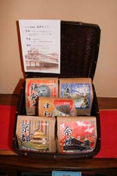 京都(ブルーマウンテンN01ブレンド) 奈良(ノスタルジア) 鎌倉(カロシアラビカグレード1) 金沢(有機コロンビア) 津和野(中米グァテマラ) 5種セット価格 各150g、4385円(送料別) ニシナ屋古江店で注文受付 電話082-507-9733 |