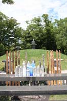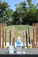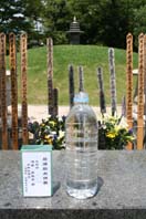 '07原爆献水 お礼とご報告 原爆献水供養に名水をご持参またはお届けいただき、誠にありがとうございました。広島の水場を守る会では、2007.8.6の早朝5:00から己斐滝の観音において、原爆語り部の宇根利枝さんと一緒に滝に打たれる自然体験をしました。その後、移動して、AM7:40に平和公園供養塔に集合し、送られてきた名水を原爆献水としてお供えをいたしました。(当日会場は大勢の方が供養に訪れますので、写真は翌8月7日に撮影しなおしてここに掲載しています。) 広島の水場を守る会 錦川 鯉、宇根 利枝など43名 2007年8月6日 |