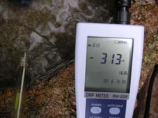 2006年10月16日、瑠璃水がマイナス313mvを計測。(久良俊道測定) |